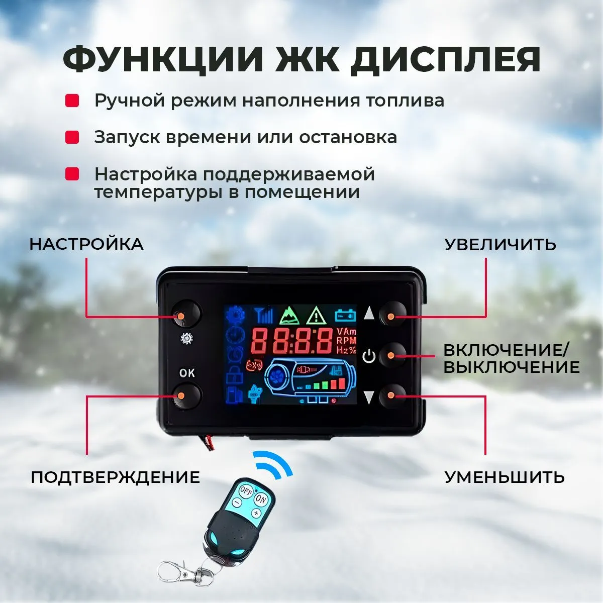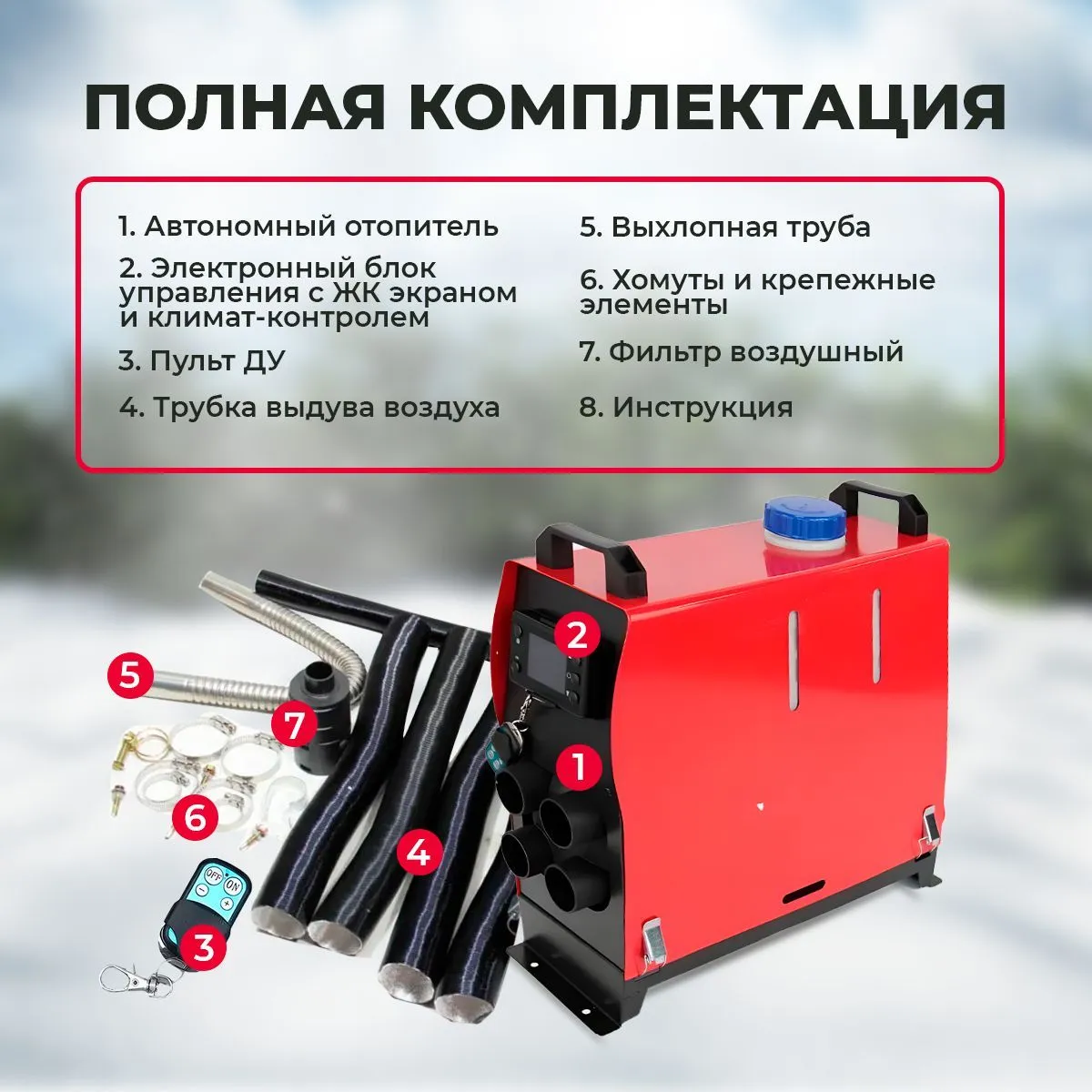 Обігрівач (автономка дизель у зборі вертикаль.) 5 кВт, 12V LCD-екран 4 відв. червоний