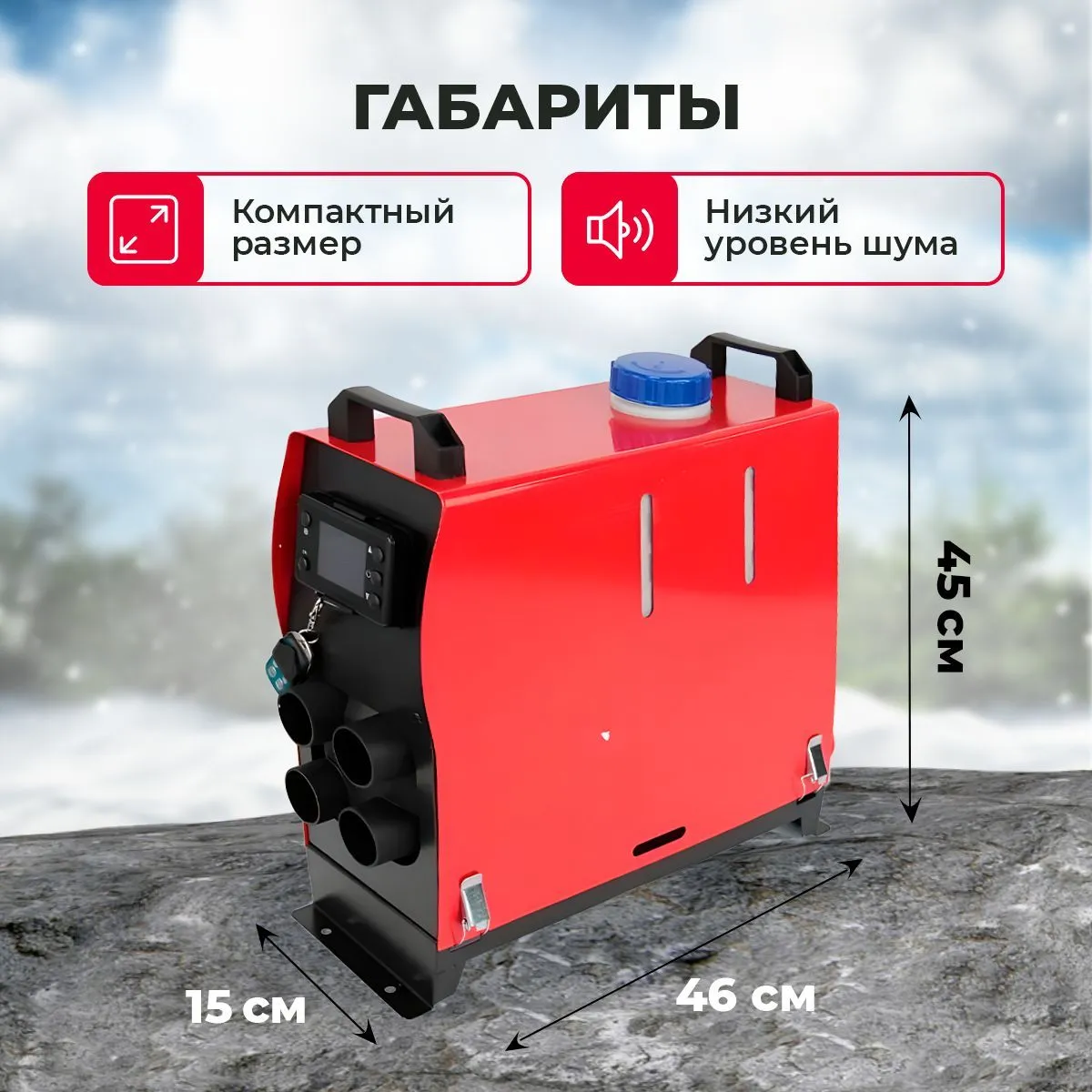 •Отопник працює на дизельному паливі та живиться від акумулятора 12 В